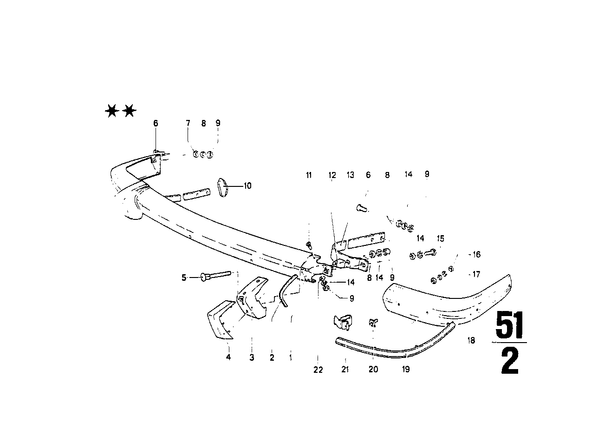 Запчасти из Германии / Запчасти БМВ / Запчасти 114 / 2000tii / Группы запчастей / Группа 51 «Оснащение кузова» / передний бампер передний бампер для БМВ 114, модель 2000tii № Наименование Дополнение Кол-во Вып. с Вып. до Номер AE 01 Бампер Ср Пд 1 04.1971 07.1977 51115670000 02 Окантовка SCHWARZ 4 04.1971 07.1977 51111808420 03 Клык бампера LINKS 1 04.1971 07.1977 51111814701 03 Клык бампера RECHTS 1 04.1971 07.1977 51111814702 04 Резиновый буфер 2 04.1971 07.1977 51111815484 05 Винт с полукруглой плоской головкой M8X100 2 04.1971 07.1977 07119910484 06 Винт с полукруглой плоской головкой M8X20 6 04.1971 07.1977 07119910437 07 Распорная шайба 2 04.1971 07.1977 51125071710 07 Резиновая шайба 2 04.1971 07.1977 51125071765 E 08 Прокладочная шайба 8,4 2 04.1971 07.1977 07119936432 AE 08 Прокладочная шайба 8,4 2 04.1971 07.1977 07119936441 E 08 Прокладочная шайба 8,4X24X2-ZNS3 2 04.1971 07.1977 07119904164 09 Гайка шестигранная с шайбой M8 12 04.1971 07.1977 51111835625 AE 09 Гайка шестигранная с шайбой M8 12 04.1971 07.1977 51117070183 10 Соединительный патрубок 2 04.1971 07.1977 51115470025 11 Винт с полукруглой плоской головкой M8X16 4 04.1971 07.1977 07119910433 12 Прокладка 1 04.1971 07.1977 51115670106 12 Прокладка 1 04.1971 07.1977 51115670107 13 Скоба Л 1 04.1971 07.1977 51111815493 13 Скоба П 1 04.1971 07.1977 51111815494 14 Упругая шайба B8 12 04.1971 07.1977 07119932095 AE 14 Упругая шайба 12 04.1971 07.1977 07119904115 15 Болт с шестигранной головкой M8X20 2 04.1971 07.1977 07119913644 E 15 Болт с шестигранной головкой M8X20-ZNS 2 04.1971 07.1977 07119901120 AE 15 Болт с шестигранной головкой M8X20-ZNNIV SI 2 04.1971 07.1977 07119903039 16 Гайка шестигранная M6 8 04.1971 07.1977 51111835624 AE 16 Гайка шестигранная M6 8 04.1971 07.1977 07146961200 AE 16 Гайка шестигранная самоконтрящаяся M6 8 04.1971 07.1977 64509123157 17 Прокладочная шайба 6,4 8 04.1971 07.1977 07119931044 E 17 Прокладочная шайба A6,4-ZNS 8 04.1971 07.1977 07119931018 E 17 Прокладочная шайба A6,4-ZNNIV SI 8 04.1971 07.1977 07119904202 18 Бампер Л Пд 1 04.1971 07.1977 51111815795 18 Бампер П Пд 1 04.1971 07.1977 51111815796 E 19 Защитная планка бампера Л Пд 1 04.1971 07.1977 51111814697 19 Защитная планка П Пд 1 04.1971 07.1977 51111814698 20 Винт планки 2 04.1971 07.1977 51111815611 21 Зажим планки 6 04.1971 07.1977 51111826895 22 Прокладочная шайба A10,5 4 04.1971 07.1977 07119931020 AE 22 Прокладочная шайба ZNS3 4 04.1971 07.1977 07119904198 22 Прокладочная шайба 10-200 HV-ZNNIV 4 04.1971 07.1977 07119904168