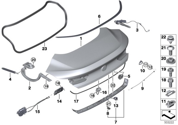 | 04 | Пружинная опора крышки багажника | 1 | 51247417235 | ||||