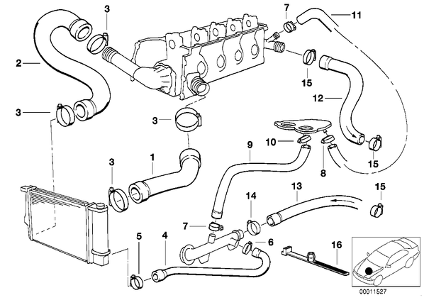 Водяной шланг системы охлаждения для БМВ E36, модель 318i