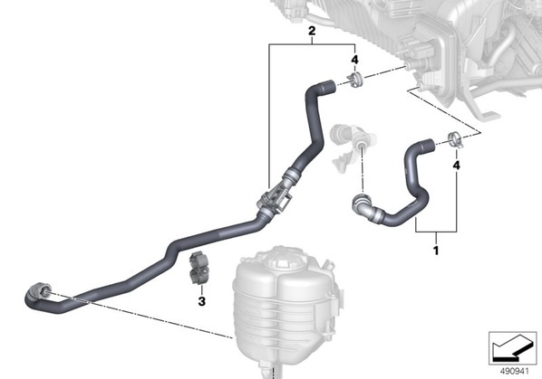 | 02 | Возвратный шланг системы охлаждения | 1 | 64219398905 | ||||