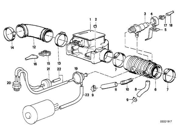 Запчасти из Германии / Запчасти БМВ / Запчасти E28 / 535i / Группы запчастей / Группа 13 «Подготовка и регулир. рабочей смеси» / Расходомер воздуха Расходомер воздуха для БМВ E28, модель 535i № Наименование Дополнение Кол-во Вып. с Вып. до Номер AE 01 Расходомер воздуха 1 06.2004 13621286064 E 01 Возвратный расходомер воздуха 1 13627547981 02 Колпачок SERVICE 1 13621274118 E 03 Клапан регулировки х.х.L-образный 1 13411286065 E 04 Резинометаллический шарнир 1 13411705564 05 Кронштейн клапана холостого хода 1 13411710794 AE 06 гофрированный кожух 1 13541707080 07 хомут L77-84 2 07129952131 08 Шланг 1 13411710793 09 хомут L23-29 2 12.1995 07129952111 09 хомут L16-30 2 64218367179 10 Угловая муфта 1 13541272473 11 Шланг для прокачки D=20MM 1 11151276485 12 Шланг 1 13711261370 13 хомут L83-90 1 07129952133 14 хомут L71-78 1 07129952129 15 Корпус вилки разъема 5 POL. 1 06.1986 12521706069 AE 15 Корпус вилки разъема 1 12521706097 16 Защитный колпачок L=27,0MM 1 61131270973 17 Корпус вилки разъема 3 POL. 1 06.1986 12521706068 E 17 Корпус вилки разъема 1 12521706096 18 Защитный колпачок L=17,5MM 1 61131358603 19 Воздушный клапан 1 11631706273 20 Термостат 45CEL 1 11741264132 21 Клапан замедленного действия 60S 1 11631711519 22 Вакуумный шланг Schwarz 3,3X1,75 X 51731257971 E 22 Вакуумный шланг Schwarz 3,3X1,8 X 11747797175 E 22 Вакуумный шланг Schwarz 3,5X1,8 X 11727545323 23 Топливный шланг 8X13MM X 16121180409