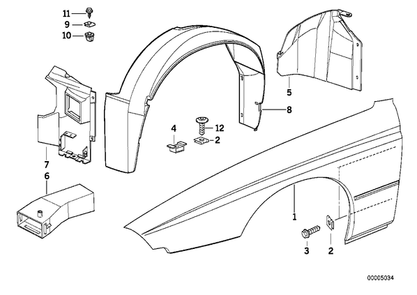 Запчасти из Германии / Запчасти БМВ / Запчасти E31 / 840i / Группы запчастей / Группа 41 «Кузов» / Переднее крыло Переднее крыло для БМВ E31, модель 840i № Наименование Дополнение Кол-во Вып. с Вып. до Номер AE 01 Крыло Л Пд 1 41358108431 01 Крыло П Пд 1 41358108432 подходит только к боковому указателю поворота 01 Крыло Л Пд 1 41358108847 подходит только к боковому указателю поворота 01 Крыло П Пд 1 41358108848 02 Листовая гайка ST6,3-2 X 07129925743 AE 02 Листовая гайка ST6,3-2-ZNS3 X 07129904232 03 Саморез с шестигранной головкой ST6,3X13-F-Z2 X 07119916964 04 Сепаратор Prestol ST6,3 4 04.1999 07129925775 AE 04 Сепаратор Prestol ST6,3-ZNS 4 07129901748 04 Листовая гайка ST 6,3 - 9 4 07129904216 05 Щиток Л 1 51718118991 05 Щиток П 1 51718118992 06 Воздуховод Л 1 51711970473 06 Воздуховод П 1 51711970474 07 Воздуховод Л 1 51718108303 07 Воздуховод П 1 51718108304 08 Щиток Л 1 51711970265 08 Щиток П 1 51711970266 09 Листовая гайка ST4,8-9 6 03.1998 07129925734 AE 09 Листовая гайка ST4,8-9-ZNS3 6 07129904150 10 Распорная гайка ST 4.8 WEISS X 63171367868 11 Саморез с шестигранной головкой ST4,8X16-ZNS3 X 07119901299 12 Винт Torx ISA ST6,3X14 X 07.1991 05.1999 41358152737 AE 12 Винт Torx ISA ST6,3X14 X 07.1991 41009163211