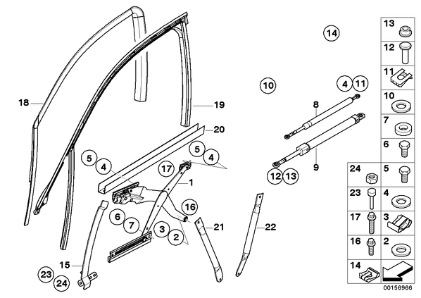 Запчасти из Германии / Запчасти БМВ / Запчасти E67 / 760LiS / Группы запчастей / Группа 51 «Оснащение кузова» / Механизм перемещения стекла двери Пд Механизм перемещения стекла двери Пд для БМВ E67, модель 760LiS № Наименование Дополнение Кол-во Вып. с Вып. до Номер AE 01 Стеклоподъемник Л Пд 1 51337055117 01 Стеклоподъемник П Пд 1 51337055118 02 Прокладочная шайба ZNS3 2 08.2005 07119904198 02 Прокладочная шайба 10-200 HV-ZNNIV 2 07119904168 03 Предохранитель B10-ZNS3 2 07129904567 04 Прокладочная шайба 8,4X16X1,6-ZNNV 4 07119907030 05 Болт с шестигранной головкой M8X12 4 07119902914 06 Болт с шестигранной головкой M8X16-8.8-ZNS3 4 07119902900 07 Распорная втулка 10X14X4 4 07147119938 08 Газонап.амортизатор пер.стеклоподъемника 2 51337063678 09 Гидроцилиндр переднего стеклоподъемника 2 67826924227 10 Прокладочная шайба 8,4X16X1,6-ZNNV 4 07119907030 11 Шайба фиксирующая B8 4 07129904492 12 Штифт 4 41517065272 13 втулка 4 41517065273 14 Шайба фиксирующая B8 4 12.2002 07129934916 AE 14 Шайба фиксирующая B8 4 07129904492 16 Винт Torx M6X20 4 07147203315 17 Torx Bolt M6X30 4 51357203714 18 Направляющая стекла двери Л Пд Внутр 1 51337055119 18 Направляющая стекла двери П Пд Внутр 1 51337055120 19 Направляющая стекла двери Л Пд Наруж 1 51337055121 19 Направляющая стекла двери П Пд Наруж 1 51337055122 21 Опора бокового стекла Л Пд 1 51337055099 21 Опора бокового стекла П Пд 1 51337055100 22 Опора бокового стекла Л Пд 1 51337066125 22 Опора бокового стекла П Пд 1 51337066126 23 Упорный буфер M6 2 51241961697 24 Гайка шестигранная M6-8-ZNNIV SI 2 07119905543