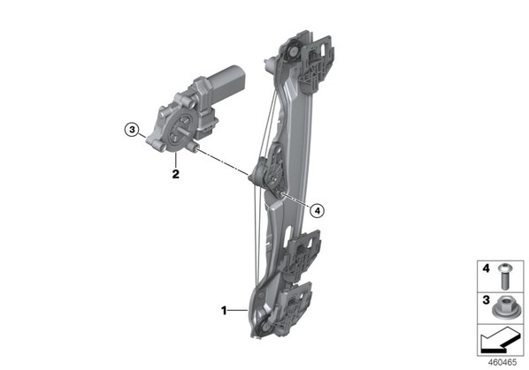 Механизм перемещения стекла двери Зд для БМВ F48, модель X1 25iX B48D