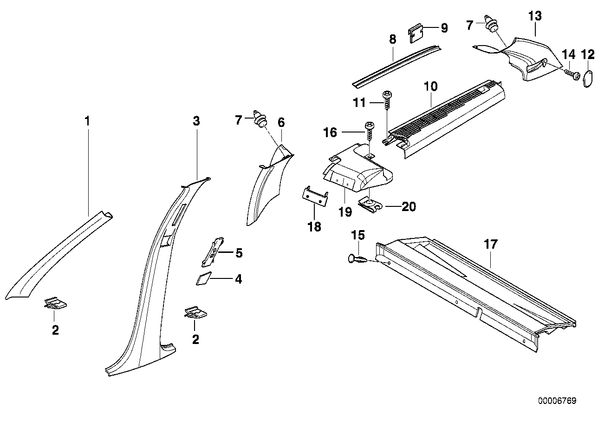 Запчасти из Германии / Запчасти БМВ / Запчасти E36 / 325tds / Группы запчастей / Группа 51 «Оснащение кузова» / Облицовка стойки A / B / C / D Облицовка стойки A / B / C / D для БМВ E36, модель 325tds № Наименование Дополнение Кол-во Вып. с Вып. до Номер AE 01 Планка обтекателя Л ANTHRAZIT 1 51432257913 01 Планка обтекателя П ANTHRAZIT 1 51432257914 01 Планка обтекателя Л GRAU 1 51438173497 01 Планка обтекателя П GRAU 1 51438173498 01 Планка обтекателя Л BEIGE 1 51438173499 01 Планка обтекателя П BEIGE 1 51438173500 02 Вставной зажим X 51437194187 03 Облицовка стойки Л Ср SCHWARZ 1 51438165327 03 Облицовка стойки П Ср SCHWARZ 1 51438165328 03 Облицовка стойки Л Ср GRAU 1 51438173501 03 Облицовка стойки П Ср GRAU 1 51438173502 03 Облицовка стойки Л Ср BEIGE 1 51438173503 03 Облицовка стойки П Ср BEIGE 1 51438173504 Для автомобилей с Отделка полностью из кожи 03 Облицовка стойки Л Ср SCHWARZ 1 51432257923 Для автомобилей с Отделка полностью из кожи 03 Облицовка стойки П Ср SCHWARZ 1 51432257924 Для автомобилей с Отделка полностью из кожи 03 Облицовка стойки Л Ср 0636/0462 GRAU 1 51432262423 E Для автомобилей с Отделка полностью из кожи 03 Облицовка стойки П Ср 0636/0462 GRAU 1 51432262424 E 04 Щиток облицовки центральной стойки Л SCHWARZ 1 51431960981 04 Щиток облицовки центральной стойки П SCHWARZ 1 51431960982 05 Крышка механ.регул.высоты ремня безоп. SCHWARZ 2 51431960983 06 Накладка стойки Л Зд SCHWARZ 1 51438191755 E 06 Накладка стойки П Зд SCHWARZ 1 51438191756 06 Накладка стойки Л Зд GRAU 1 51438191757 E 06 Накладка стойки П Зд GRAU 1 51438191758 E 06 Накладка стойки Л Зд BEIGE 1 51438191779 E 06 Накладка стойки П Зд BEIGE 1 51438191780 E 07 ·РЦШЬ, СХЫлЩ 2 51411973500 08 Накладка левая SCHWARZ 1 51442267165 08 Накладка правая SCHWARZ 1 51442267166 08 Накладка левая GRAU 1 51448191803 E 08 Накладка правая GRAU 1 51448191804 E 08 Накладка левая BEIGE 1 51448191805 E 08 Накладка правая BEIGE 1 51448191806 E 09 Скоба 4 07147654321 10 Решетка Л SCHWARZ 1 51478191773 10 Решетка П SCHWARZ 1 51478191774 10 Решетка Л GRAU 1 51478191775 10 Решетка П GRAU 1 51478191776 10 Решетка Л BEIGE 1 51478191777 10 Решетка П BEIGE 1 51478191778 11 Винт самонарезающий со сферич.головкой ST4,8X19-Z2 6 05.1999 07119907954 AE 11 Самонарезающий винт ST4,8X19 6 07119904714 12 Колпачок SCHWARZ 2 51442267167 E 12 Колпачок GRAU 2 51448191849 E 12 Колпачок BEIGE 2 51448191850 E 13 Накладка стойки Л Зд SCHWARZ 1 51438191797 E 13 Накладка стойки П Зд SCHWARZ 1 51438191798 E 13 Накладка стойки Л Зд GRAU 1 51438191799 13 Накладка стойки П Зд GRAU 1 51438191800 13 Накладка стойки Л Зд BEIGE 1 51438191801 E 13 Накладка стойки П Зд BEIGE 1 51438191802 E 14 Универс.саморезы с полупотайной головкой ST4, 8X16MM X 51419143799 15 Зажим 4 51468151500 E 16 Винт самонарезающий со сферич.головкой ST4,8X19 X 07119907790 17 Накладка поперечной балки рамы Зд ANTHRAZIT 1 51478191830 17 Накладка поперечной балки рамы Зд GRAU 1 51478191832 E 17 Накладка поперечной балки рамы Зд BEIGE 1 51478191834 E 18 Накладка SCHWARZ 2 51478191769 18 Накладка GRAU 2 51478191770 E 18 Накладка BEIGE 2 51478191771 E 19 Щиток Л SCHWARZ 1 51478191761 E 19 Щиток П SCHWARZ 1 51478191762 E 19 Щиток Л GRAU 1 51478191763 19 Щиток П GRAU 1 51478191764 E 19 Щиток Л BEIGE 1 51478191765 E 19 Щиток П BEIGE 1 51478191766 E 20 Вставная гайка M5 X 46637651465