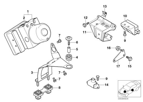 Запчасти из Германии / Запчасти БМВ / Запчасти E46 / 316ti N42 / Группы запчастей / Группа 34 «Тормозные механизмы» / Гидроагрегат DSC/крепление/датчики Гидроагрегат DSC/крепление/датчики для БМВ E46, модель 316ti N42 № Наименование Дополнение Кол-во Вып. с Вып. до Номер AE 01 RP гидравлический узел DSC 1 09.2001 34516756291 E 01 Замена гидравлический узел DSC 1 09.2001 34512460505 02 Ремонтный комплект ЭБУ DSC 1 09.2001 34516756293 E 02 Замена ремонт.комплект блок управлен.DSC 1 09.2001 34512460475 03 Кронштейн гидроагрегата 1 09.2001 34516752664 04 Резинометаллический шарнир 1 09.2001 34511162818 05 Распорная втулка ZNS3 1 09.2001 07146977328 06 Болт с шестигранной головкой с шайбой M8X35-Z2 1 09.2001 07119901504 E 07 Болт с шестигранной головкой с шайбой M6X12-U1-8.8 3 09.2001 07119904517 08 Резинометаллический шарнир 1 09.2001 34511164650 09 Болт с шестигранной головкой M6X20-8.8-ZNS 2 09.2001 07119913016 09 Болт с шестигранной головкой M6X20-8.8-ZNS 2 09.2001 07119913016 10 Датчик уровня оборотов 1 09.2001 34526864094 11 Кронштейн датчика 1 09.2001 34521165384 12 Болт с шестигранной головкой M6X16-8.8-ZNS3 4 09.2001 07119904371 13 Сепаратор Prestol 4 09.2001 32411095443 14 Датчик ускорения 1 09.2001 37146781405 15 Саморез с шестигранной головкой ST4,8X16-C-Z1 2 09.2001 07119916945 16 Пластмассовая гайка M6 1 09.2001 16131176747 17 Кронштейн датчика DSC 1 09.2001 34521164463