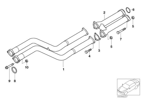 Система выпуска ОГ Пд/промежут.трубы для БМВ Z3, модель Z3 M3.2 S54