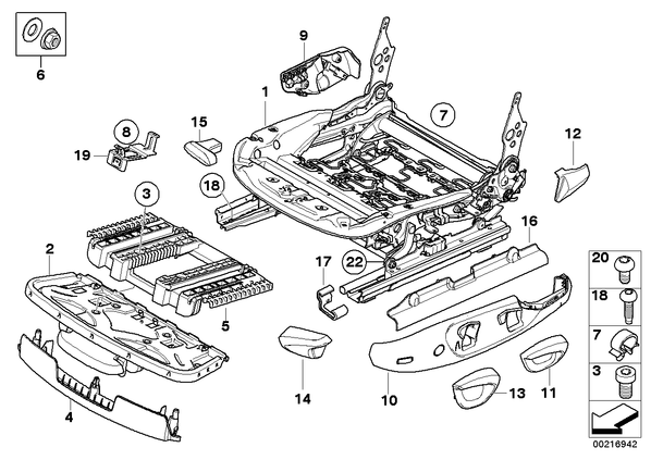 Запчасти из Германии / Запчасти БМВ / Запчасти E92 / M3 / Группы запчастей / Группа 52 «Сиденья» / Сиденье Пд направ.сиден.с мех.прив./дет. Сиденье Пд направ.сиден.с мех.прив./дет. для БМВ E92, модель M3 № Наименование Дополнение Кол-во Вып. с Вып. до Номер AE 01 Механизм сиденья Л 1 52107139031 01 Механизм сиденья П 1 52107139032 02 Кронштейн подколенной опоры 2 52107161311 03 Самонарезающий винт BL 7,2X22 4 52107160653 04 Накладка сиденья Л SCHWARZ 1 52106958659 04 Накладка сиденья П SCHWARZ 1 52106958660 05 Соединение подколенной опоры 2 52107161312 06 Запасной комплект 1 52107245949 07 Держатель провода D=12,8MM X 61131267476 08 Винт со сферо-цилиндрической головкой M4X8 4 07147148547 09 Накладка сиденья Л Внутр SCHWARZ 1 52106979325 09 Накладка сиденья П Внутр SCHWARZ 1 52106979326 10 Накладка сиденья Л Наруж SCHWARZ 1 52109120349 10 Накладка сиденья П Наруж SCHWARZ 1 52109120350 11 Рычаг Л 1 52109120355 11 Рычаг П 1 52109120356 12 Накладка карабина ремня безопасности Л SCHWARZ 1 52106978885 12 Накладка карабина ремня безопасности П SCHWARZ 1 52106978886 13 Рычаг Л 1 52107118439 13 Рычаг П 1 52107118440 14 Рычаг Л 1 52107139035 14 Рычаг П 1 52107139036 15 Рычаг Л 1 52107118443 15 Рычаг П 1 52107118444 16 Накладка направляющей сиденья Л 1 52107118489 16 Накладка направляющей сиденья П 1 52107118490 подходит только к направляющей сиденья Л Пд/П Зд 17 Защитный кожух направляющей сиденья SCHWARZ 2 52109110104 подходит только к направляющей сиденья П Пд/Л Зд 17 Защитный кожух направляющей сиденья SCHWARZ 2 52109110103 18 Винт со сферо-цилиндрической головкой M10X37 4 07149156953 19 Кронштейн ЭБУ 1 52107140863