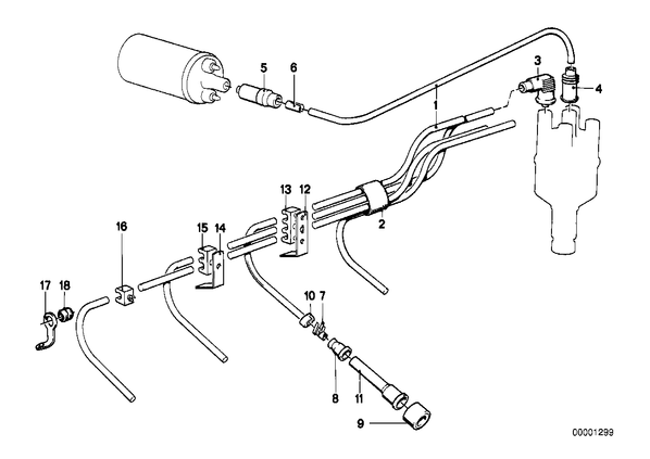 Запчасти из Германии / Запчасти БМВ / Запчасти E12 / 518i / Группы запчастей / Группа 12 «Электрооборудование двигателя» / Жгут проводов высокого напряжения Жгут проводов высокого напряжения для БМВ E12, модель 518i № Наименование Дополнение Кол-во Вып. с Вып. до Номер AE 01 Провод высокого напряжения X 07.1975 12121705675 02 Изолирующий шланг B18X1 X 07.1975 07119975349 Для автомобилей с Исполнение для Швеции 03 Помехоподавляющий штекер 1000-OHM 4 07.1975 12121289837 E только в комбинации с 03 Помехоподавляющий штекер 4 07.1975 12121289840 только в комбинации с -- цилиндрический разъем 4 07.1975 12121705656 04 Помехоподавляющий штекер 1000-OHM 1 07.1975 12121289837 E только в комбинации с 04 Помехоподавляющий штекер 1 07.1975 12121289840 только в комбинации с -- цилиндрический разъем 1 07.1975 12121705656 05 Помехоподавляющий штекер 1000-OHM 1 07.1975 06.1981 12121279567 E только в комбинации с -- цилиндрический разъем 1 07.1975 06.1981 12121363327 05 Помехоподавляющий штекер 1 07.1975 12121279568 только в комбинации с -- цилиндрический разъем 1 07.1975 12121363327 05 Защитный колпачок 1 07.1975 12118536129 только в комбинации с 05 Защитный колпачок 1 07.1975 12121360397 только в комбинации с -- цилиндрический разъем 1 07.1975 12121363327 06 Гильза для защиты жил кабеля 1 07.1975 12128536120 E 07 цилиндрический разъем X 07.1975 12121363327 07 цилиндрический разъем X 07.1975 12121705656 08 Защитный колпачок 4 07.1975 12121276161 09 Защитный колпачок 4 07.1975 12121266683 10 Маркировочное кольцо ZYL.1 2 07.1975 12121706186 10 Маркировочное кольцо ZYL.2 2 07.1975 12121706187 10 Маркировочное кольцо ZYL.3 2 07.1975 12121706188 10 Маркировочное кольцо ZYL.4 2 07.1975 12121706189 11 Наконечник провода к свече зажигания 1000-OHM 4 07.1975 09.1980 12121266699 только в комбинации с -- цилиндрический разъем 4 07.1975 09.1980 12121363327 12 Кронштейн 2 07.1975 12121357937 E 13 Кронштейн 1 07.1975 12121353672 14 Кронштейн 1 07.1975 12121360790 E 15 Кронштейн 1 07.1975 13531254041 16 Кронштейн 1 07.1975 12121360791 AE Для автомобилей с Исполнение для Швеции 17 Резиновая втулка 1 07.1975 12121273106 Для автомобилей с Исполнение для Швеции 18 Резиновая втулка 14MM 1 07.1975 64214774135 E